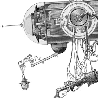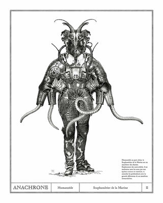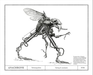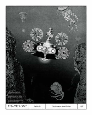 Morceaux de machines, fragments d’objets, parties de végétaux ou d’animaux, organes, éléments mécaniques, segments d’armures ou détails d’architecture… C’est un corpus de plusieurs milliers de « pièces détachées » inlassablement chinées dans une multitude d’antiques encyclopédies et de dictionnaires illustrés qui sert de base à la création des Mondes Anachrones.
